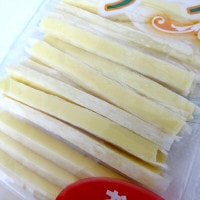 原材料:ナチュラルチーズ、食用精製加工油脂、乳たん白、魚肉すり身、でん粉、食塩、食物たん白、砂糖、食物油脂、乳化剤、ソルビット、加工デンプン、調味料(アミノ酸等)、